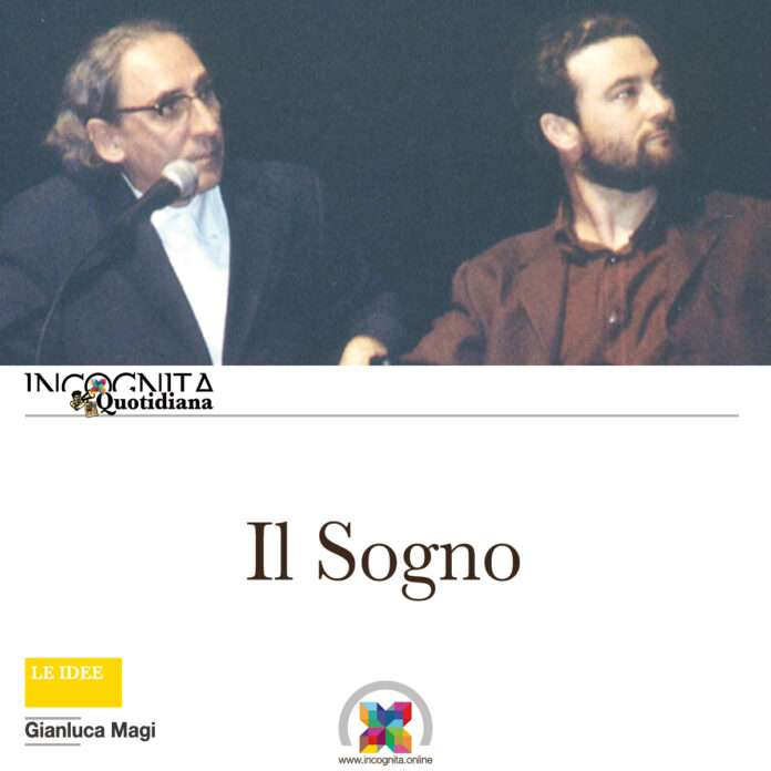 Questa è la ragione per cui nel Seminario “Linguaggio dimenticato” parlerò per la prima volta dell’ultimo sogno di Franco Battiato che mi raccontò nella veranda di casa a Milo, nella primavera-estate del 2019, con voce sussurrata, a tratti stentata, ma molto mirata. Come suo congedo che lampeggia come un faro nello specchio della coscienza. Poco prima dell’ultima mia partenza in India e del progressivo transito della sua mente dalle grandi acque dell’esistenza all’altra parte, nell’altra realtà, nel Regno del Ritorno.